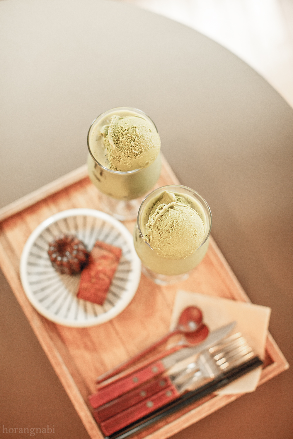 찐득하고 진한 녹차 아이스크림이 컵 가득 듬뿍 올려져 있다. 소금까지 살짝 첨가되어, 달콤쌉쌀짭짤~