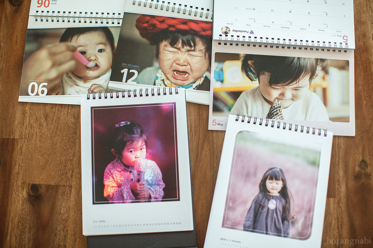 그 해에 찍은 모든 사진을 1월부터 12월까지 쭉 봅니다. 그래서 1월 아이 사진 중 베스트 A컷 단 한 장만 골라요. 그리고는 2월, 3월 계속 골라서 12월까지 모두 12장의 A컷들만 골라냅니다. 더도 말고 딱 12장. 그렇게 골라낸 사진들로 이듬해 12개월 탁상달력을 만들지요.